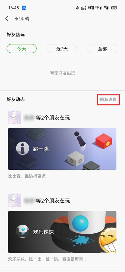 6、微信小游戏的动态也可以进入【微信小游戏】小程序,点击【隐私设置】;