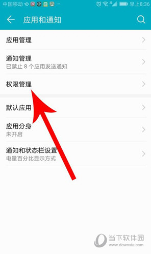 3.打开“应用程序和通知”界面,点击“权限管理”
