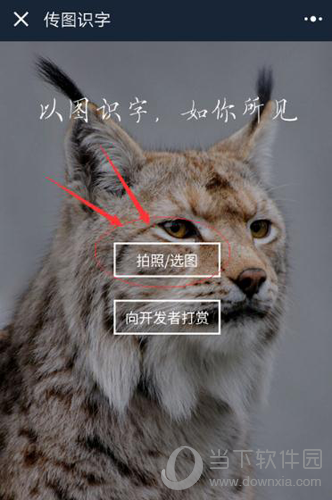 2、然后我们会进入图像传输和识字功能界面,点击“拍照/选择图片”,选择一张事先拍摄好的图片或者选择拍照;