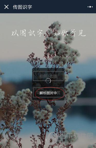 2、然后我们会进入图像传输和识字功能界面,点击“拍照/选择图片”,选择一张事先拍摄好的图片或者选择拍照;