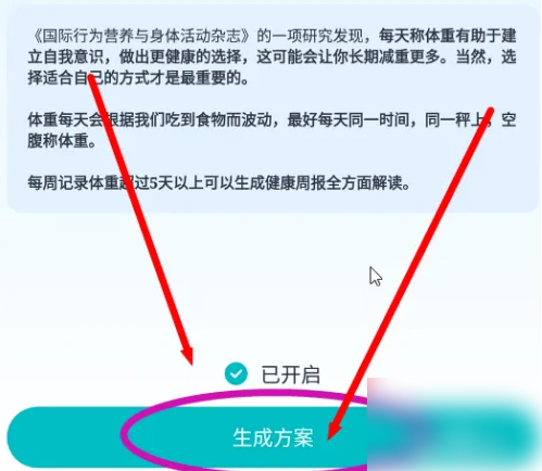 单击“生成计划”按钮创建减肥目标并生成计划。