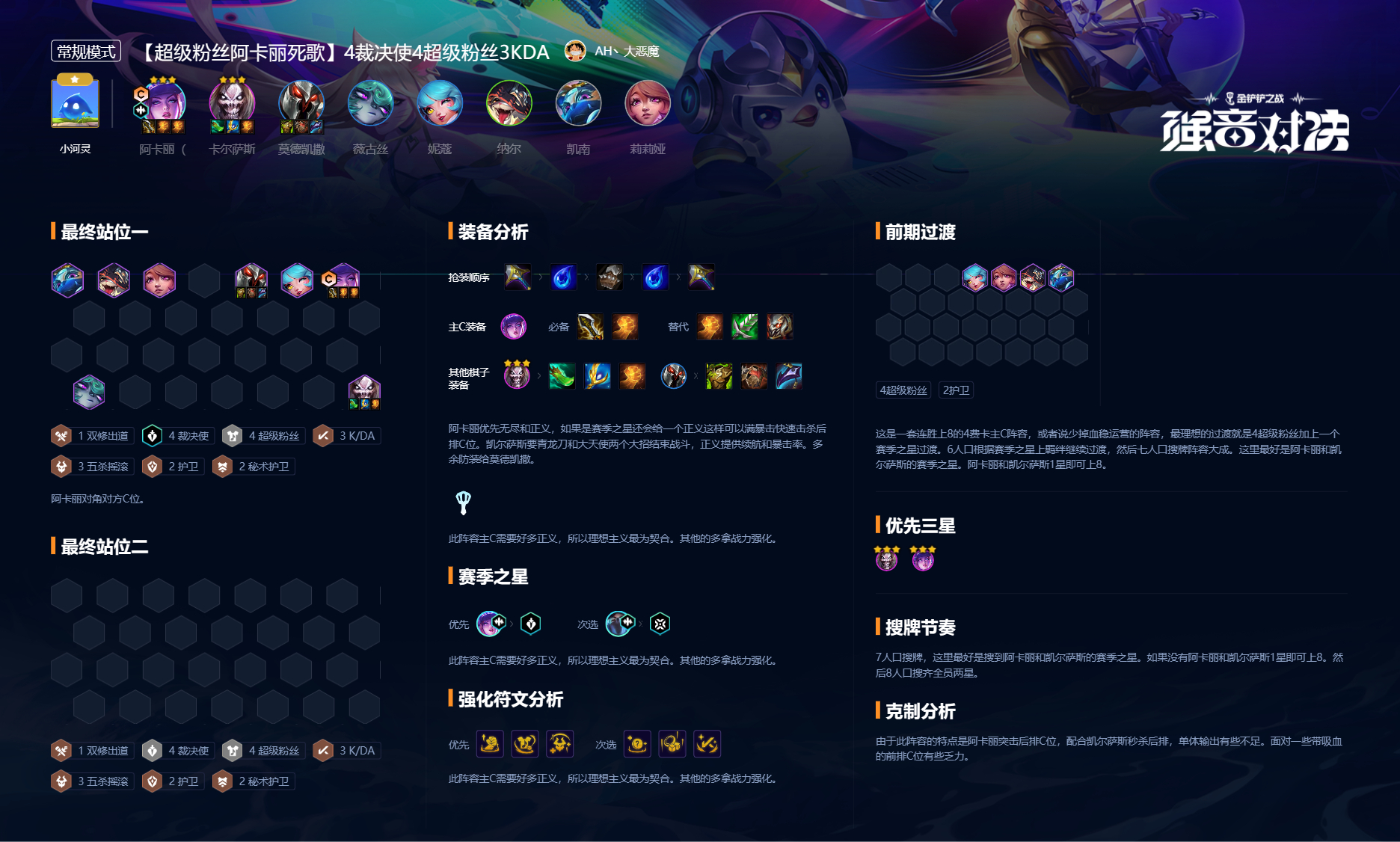 金铲铲之战s10超级粉丝阿卡丽阵容搭配指南