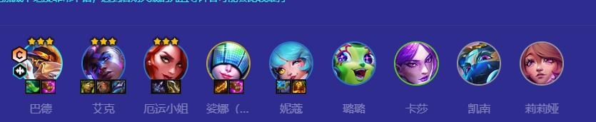 1.阵容构成:巴德+艾克+女枪+索娜+妮可+露露+卡莎+凯南+莉莉娅