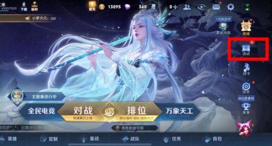 1、首先玩家进入游戏主界面,然后点击右侧的活动按钮。