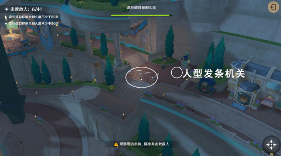 位置一:射击消灭图中的两个偷宝团伙和两个发条机关。