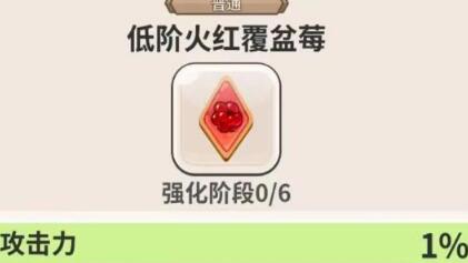 3.常见食材为低级火红树莓,攻击力只有1%,需要6级强化。