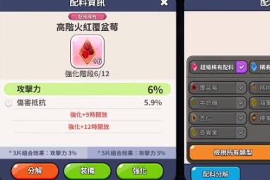 1、高级火红树莓等超稀有食材,需要12级强化,攻击力3%。