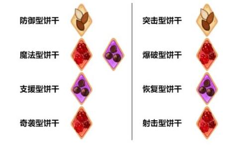 成分cookie可分为8类,即防御cookie、魔法cookie、支持cookie、惊喜cookie、攻击cookie、爆炸cookie、恢复cookie和射击cookie。
