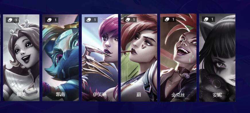 科奇、莉莉娅、亚索、塔姆、奥拉夫、基桑蒂、塔里克、娜美、凯南、伊芙琳、维、金克丝、安妮。