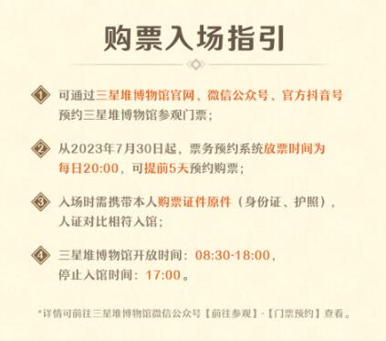 您可以通过三星堆官网、公众号、抖音预订门票。