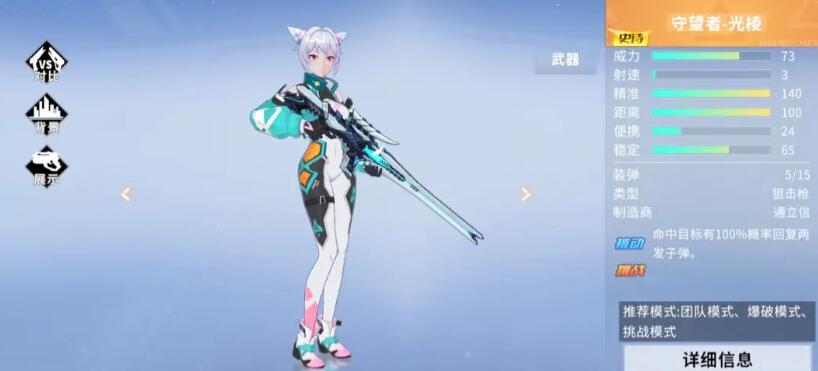 推荐理由:该武器可以在所有模式下使用。命中后,装弹效率比其他狙击枪更快。可以通过常规武器库获得。具有良好的精度和功率,可适用于多种模式。