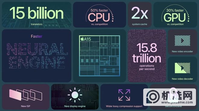 关于这款A15仿生芯片的具体规格我们就不详细说了。它采用5nm制程工艺制成,集成多达150亿个晶体管,内置6核CPU+5核GPU,以及支持高达158,000像素/秒的16核神经网络引擎。亿运营。即使在今天,A15 Bionic芯片的整体性能仍然非常强劲,领先Android平台上的大多数旗舰芯片。