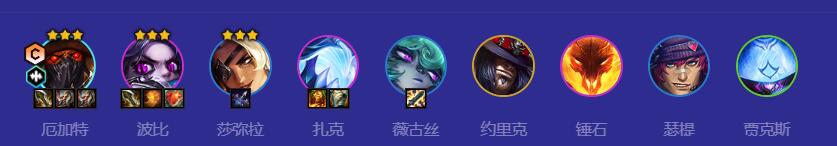 1.阵容组成:厄加特、波比、萨米拉、扎克、维格斯、约里克、锤石、塞特、贾克斯