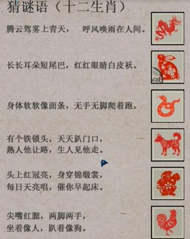 8.最后猜十二生肖,分别是【龙、兔、蛇、狗、猴、鸡】。