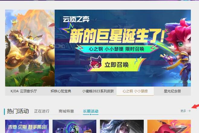 1.首先,玩家可以进入英雄联盟官方网站,点击【更多】。