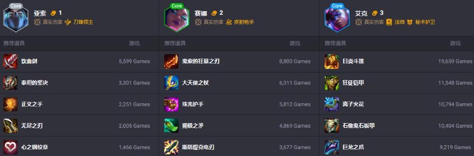 亚索、凯南、赛娜、永恩、锐雯、艾克、阿卡丽、奇亚娜