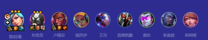 1.阵容组成:凯瑟琳+闪电侠+卢锡安+俄洛伊+艾克+莫德凯撒+盖伦+奎桑蒂+莉莉娅