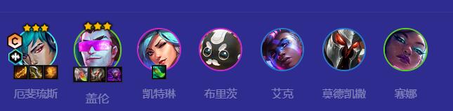 1.阵容组成:厄斐琉斯+盖伦+凯瑟琳+闪电侠+艾克+莫德凯撒+塞纳