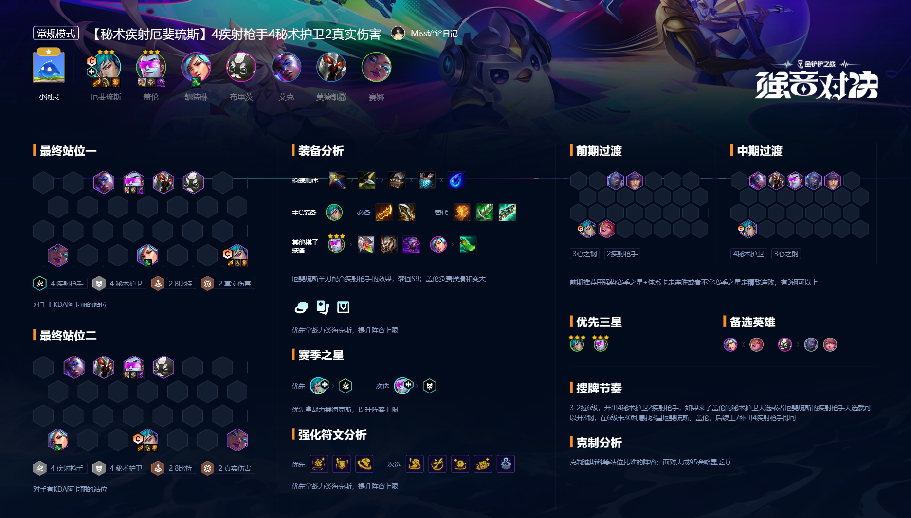 2.阵容分析:克制肉,坚持阵容,对抗刺客和95相对较弱。