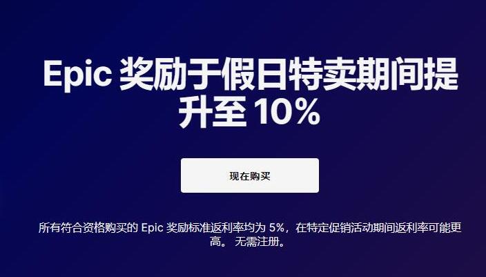每笔商城交易金额的5%将存入奖励余额,销售期间5%比例将升级至10%。 Epic奖励将在购买完成后14天存入您的账户,并可在支付游戏时作为现金使用。