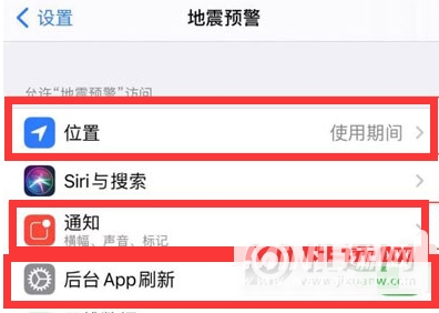 3. 将地震预警应用的位置权限设置为使用中,并打开后台应用刷新开关。