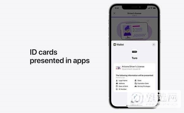 从iOS 16 开始,用户将能够在需要身份或年龄验证的精选应用中出示存储在钱包应用中的身份证。例如,Apple 展示了Uber 和Turo 这两个应用程序,可以选择接受电子钱包应用程序ID,但哪些应用程序决定实现该功能还有待观察。