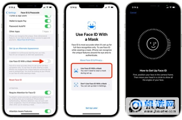 根据苹果的发布说明,iOS 15.4 增加了一个在戴口罩时使用Face ID 的选项,其工作原理与常规Face ID 类似,但会扫描眼睛周围的区域进行身份验证。用户还可以在戴着口罩的情况下使用Face ID进行Apple Pay支付。 (注:仅iPhone 12及后续机型支持口罩解锁)