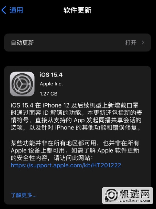 iOS 15.4 和iPadOS 15.4 更新可免费下载,并可在所有符合条件的设备上通过“设置”应用程序进行无线更新:“设置常规软件更新”。