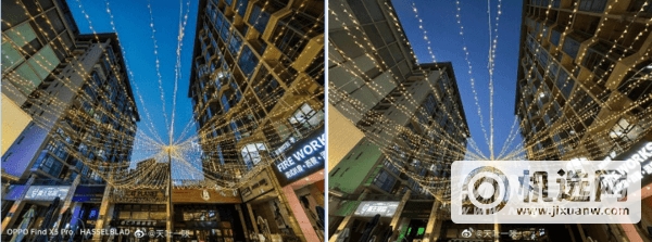 首先我们来看一组夜景样张。图片中的场景基本上都是我们经常遇到的城市夜晚场景。对于手机来说,有两个部分比较难处理。一是霓虹灯的抑制作用。二是还原暗部细节。从样张中我们不难看出,左侧OPPO Find X5 Pro的广告牌灯光能够显示得非常清晰,而右侧的iPhone 13 Pro则显得抑制不足。虽然看得很清楚,但效果还是前者更好。