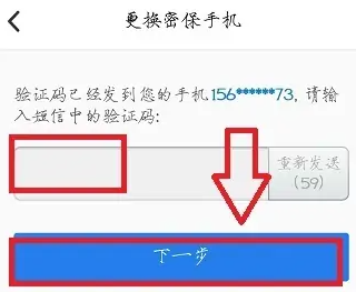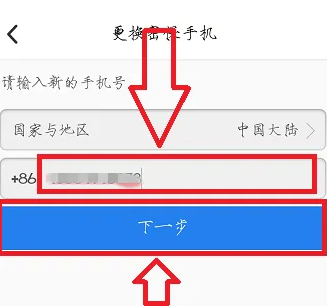 6、现在进入安全手机更换界面,输入新的手机号码,点击“下一步”按钮。