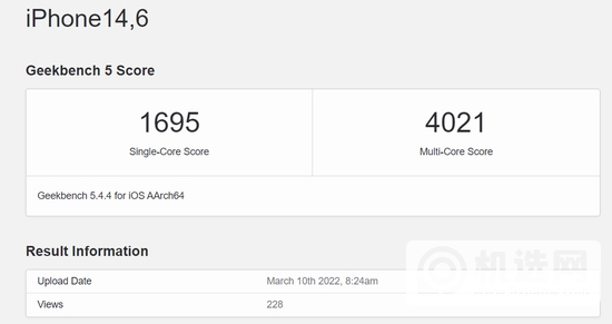 今日,该机现身Geekbench基准测试平台。 CPU单核成绩1695,多核成绩4021,依然是3.2GHz,属于正常的A15水平,多核稍低一些。
