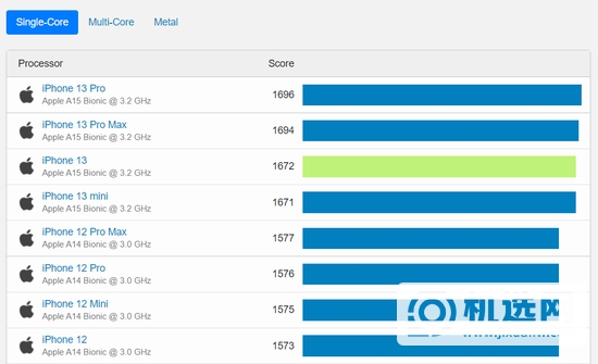 iPhone 13/12系列单核跑分