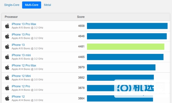 iPhone 13/12系列多核跑分
