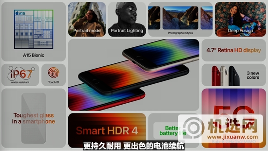 IT之家获悉,苹果声称iPhone SE 3 采用强大的CPU,性能高达iPhone 8 的1.8 倍,6 核中央处理器(2 个性能核心和4 个能效核心),以及4 核处理器。图形处理器。 16核神经网络引擎,支持5G网络。