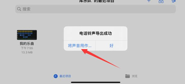 6. 手机铃声导出成功后,点击“使用声音作为铃声”。