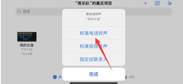 7. 单击“标准电话铃声”将其用作短信铃声或将其分配给联系人。