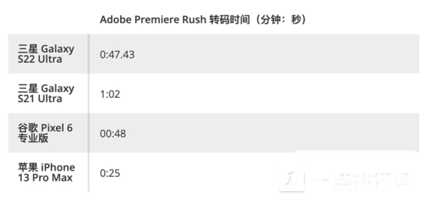 Galaxy S22 Ultra 再次大幅领先前代产品,用时为47 秒,而前代产品S21 Ultra 以1 分2 秒完成相同任务。