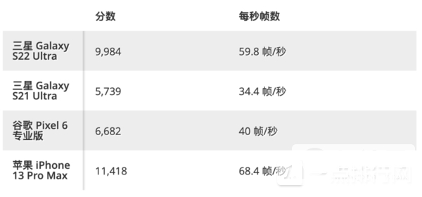 尽管如此,iPhone 13 Pro Max 以平均11,418 帧和68.4 fps 的成绩名列前茅。