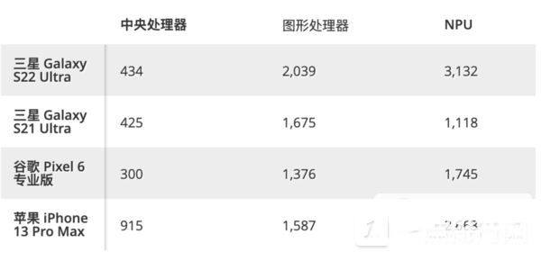 令人惊讶的是,Galaxy S22 Ultra 在本次测试中领先于iPhone 13 Pro Max,CPU 得分为434,GPU 得分为2039,NPU 得分为3132。