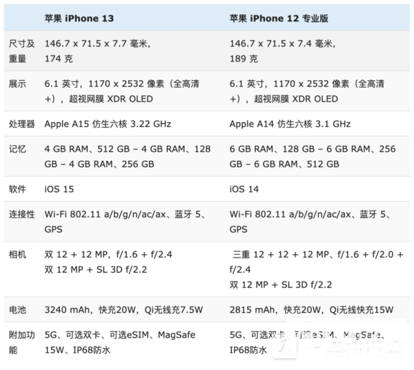 iPhone 13 相对于iPhone 12 Pro 的一大优势是其更大的电池:3240 mAh,而不仅仅是2815 mAh。