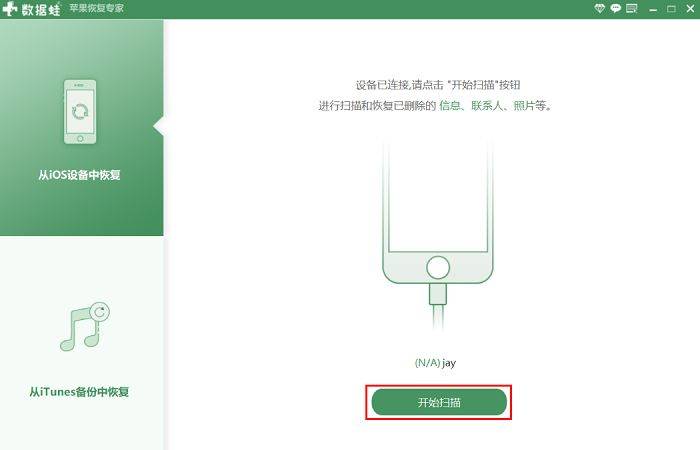第一步:插上自己的USB数据线后,按照软件界面的提示,选择“开始扫描”按钮;