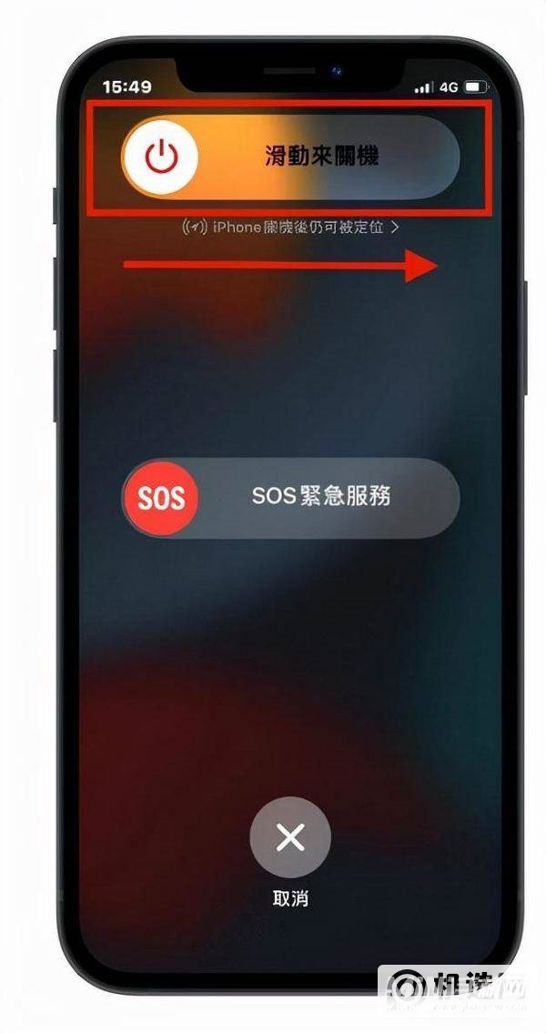 首先,同时按下iPhone 13 手机上的音量按钮(+) 或音量按钮() + 侧面电源按钮组合。按住3秒后,手机屏幕上会弹出“滑动关机”的提示信息。这时我们只要向右滑动滑块即可关闭。
