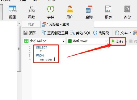 4、编写“sql语句”查询数据库数据,点击“运行”。