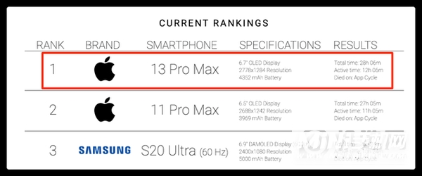 iPhone 13 Pro Max 在PhoneBuff 测试的机型中也拥有最好的电池续航时间。