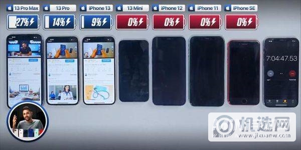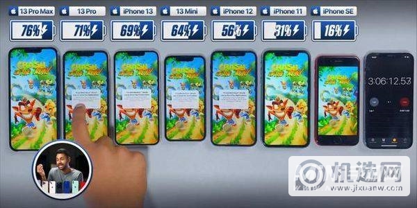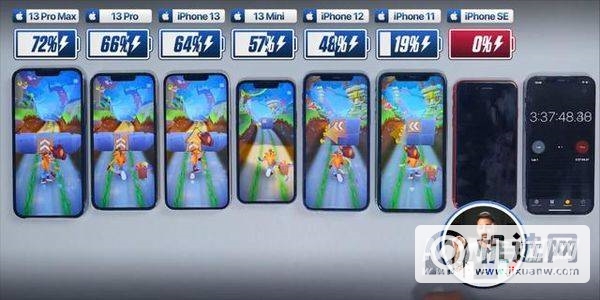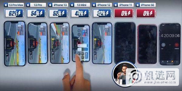 当续航测试运行4小时20分钟时,iPhone 11的电池容量已耗尽。要知道这款手机其实电池容量比iPhone 12还要多,但是续航表现却太差了。此时,iPhone 12 仍有42% 电量,仅比iPhone 13 mini 少1%。 iPhone 13 和13 Pro 剩余电量差异仅2%,只有iPhone 13 Pro Max 始终稳居第一
