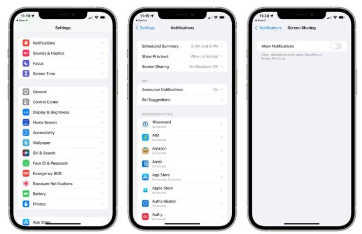 设置应用程序中的通知图标具有更新的外观。苹果还添加了一个新的开关,允许用户在屏幕共享或屏幕镜像时禁用通知。