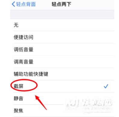 在设置界面,点击【辅助功能】-点击【触摸】选项-滑动到底部,选择【轻按背面】-选择【双击】-勾选【截图】。