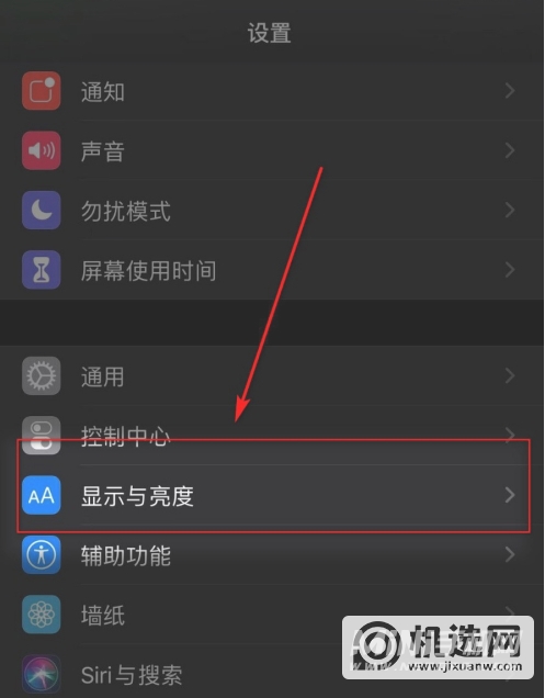 2、在设置界面下拉找到【显示和亮度】选项,点击打开显示和亮度,进入界面;