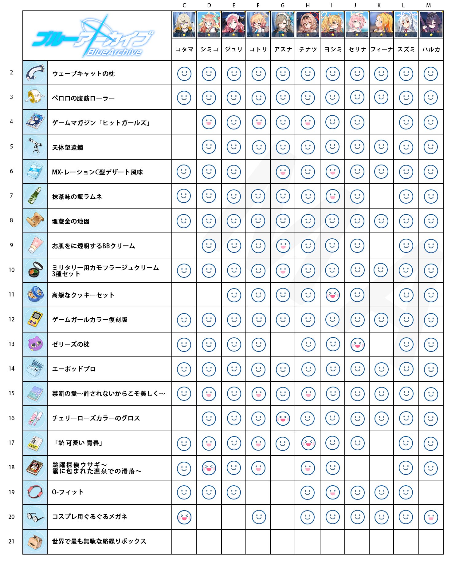蓝色档案中的每个学生都有自己的喜好。不同的礼物可以通过不同的方式增加好感度。最好遵循他们的喜好。以下是所有学生的喜好指南,可以作为送礼的参考。