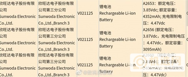 此前,根据@digitchatstation微博的爆料细节,我们可以看到iPhone 13系列的电池可能为2406mAh、3095mAh和4352mAh。与同类机型相比,2406mAh比iPhone 12 Mini使用的2227mAh高出约10%。